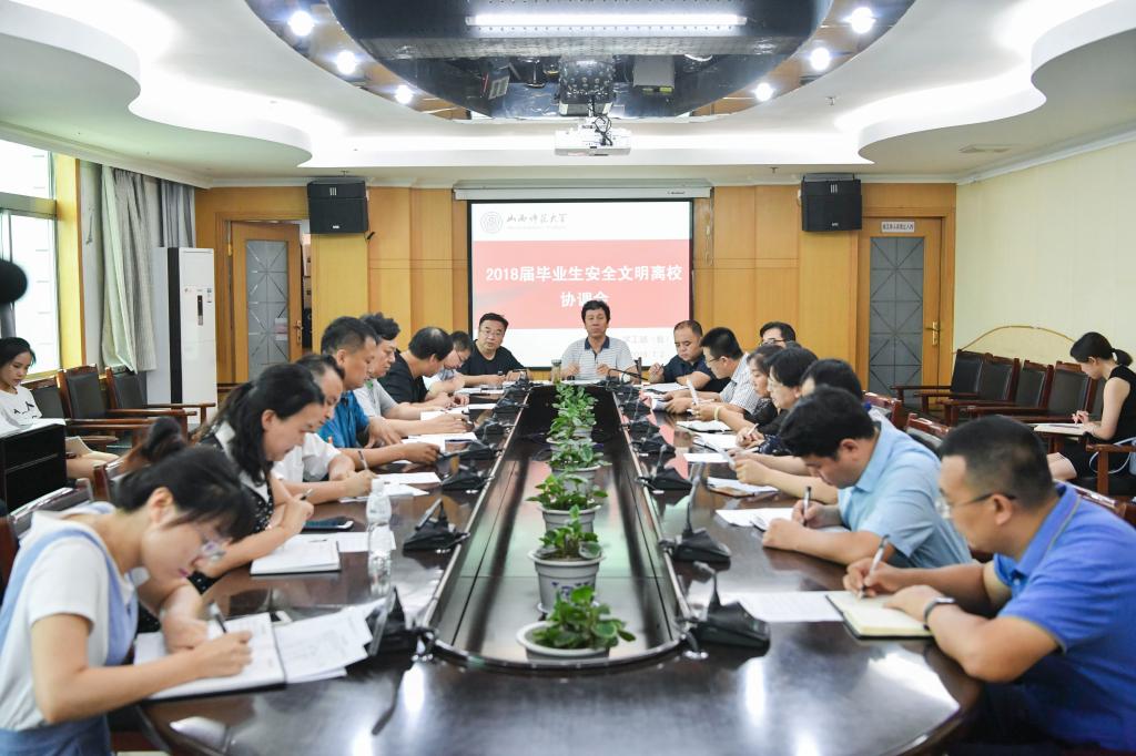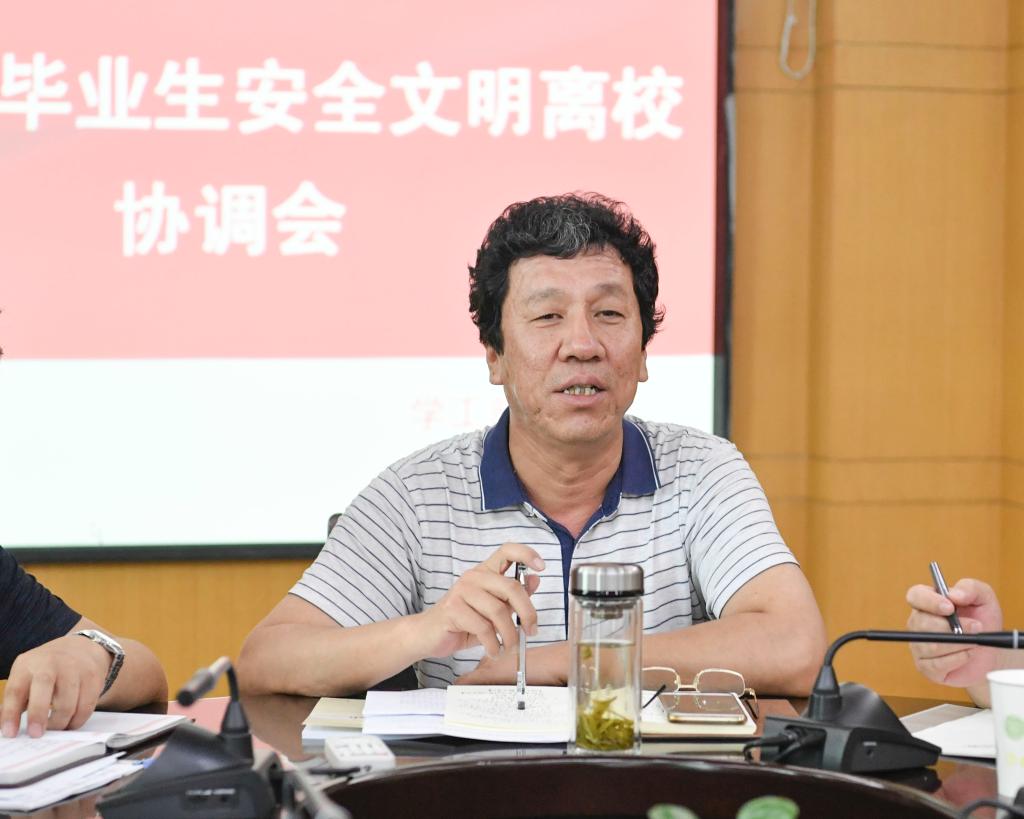 针对做好毕业生安全文明离校工作,高峰副书记提出三点要求:一要提高认识、周密部署。毕业季毕业生能否安全、文明、顺利告别母校走向社会,是对干部考验的关键时刻,与会干部要敢于担当、敢于作为,将毕业生离校作为一项重点工作高度重视,各学院与相关职能部门要严格按照时间节点做好相应工作,两办和学工部要加强监督,保障毕业生离校工作无缝隙、无死角、无盲区。二要关爱学生,服务学生。要将学生当作孩子一样关爱,利用毕业前一周时间给学生上好“最后一堂课”,将母校美好形象留在毕业生的记忆之中。各单位和各学院要做到“话好听、脸好看、事好办”,为毕业生提供高质量的服务。三要加强沟通,确保安全。各部门要团结协作,相互配合,关键时候不分你我。对毕业生离校存在的安全隐患、稳定隐患提前做好应急预案,关注重点学生、重点人群,给他们多一些温暖和关爱。他强调,各学院和相关单位要各司其责、通力合作,认真落实好每一环节,将毕业生文明离校工作做好、做到位。
