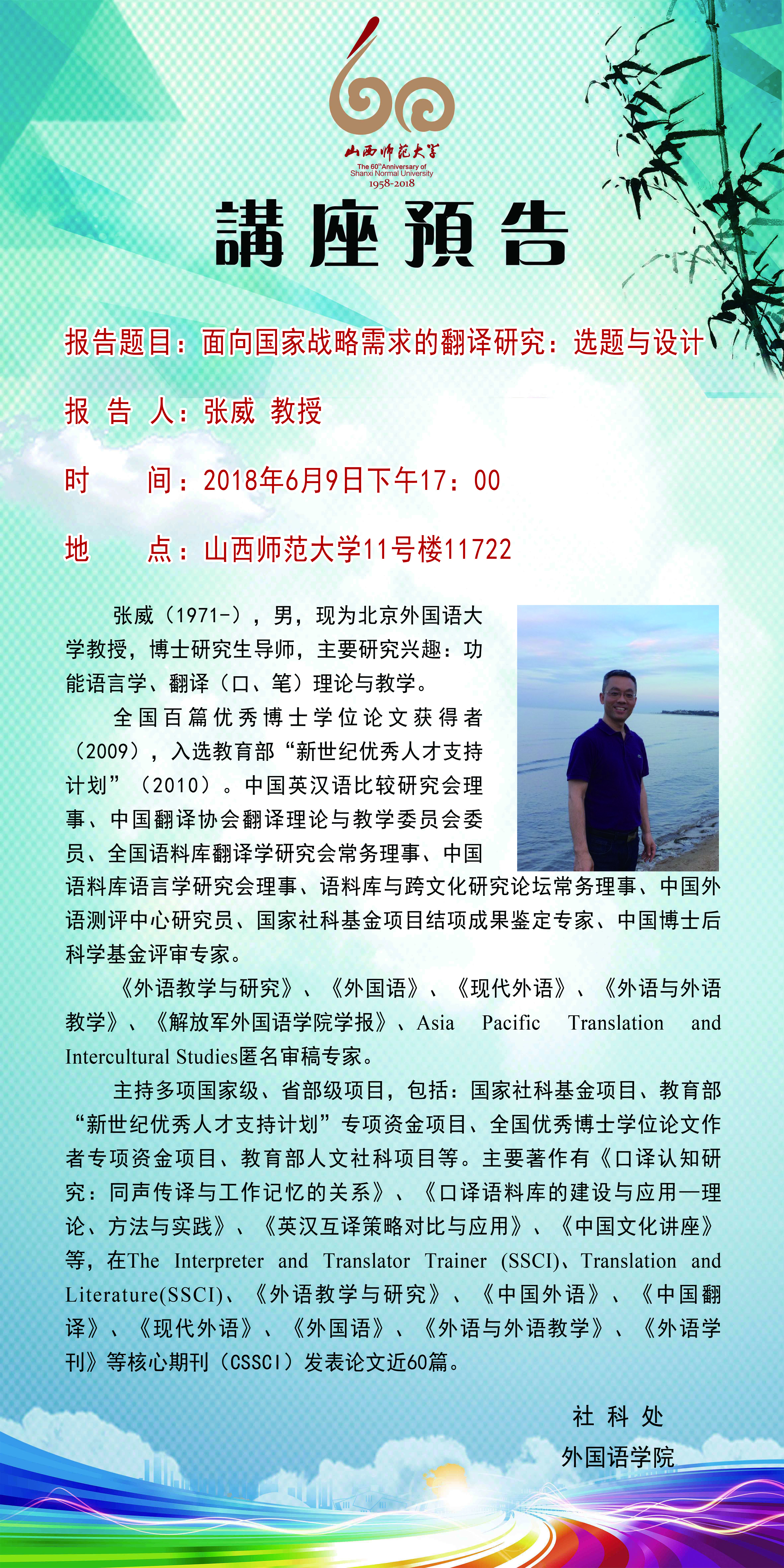【预告】北京外国语大学张威教授应外国语学院邀请来我校作学术报告