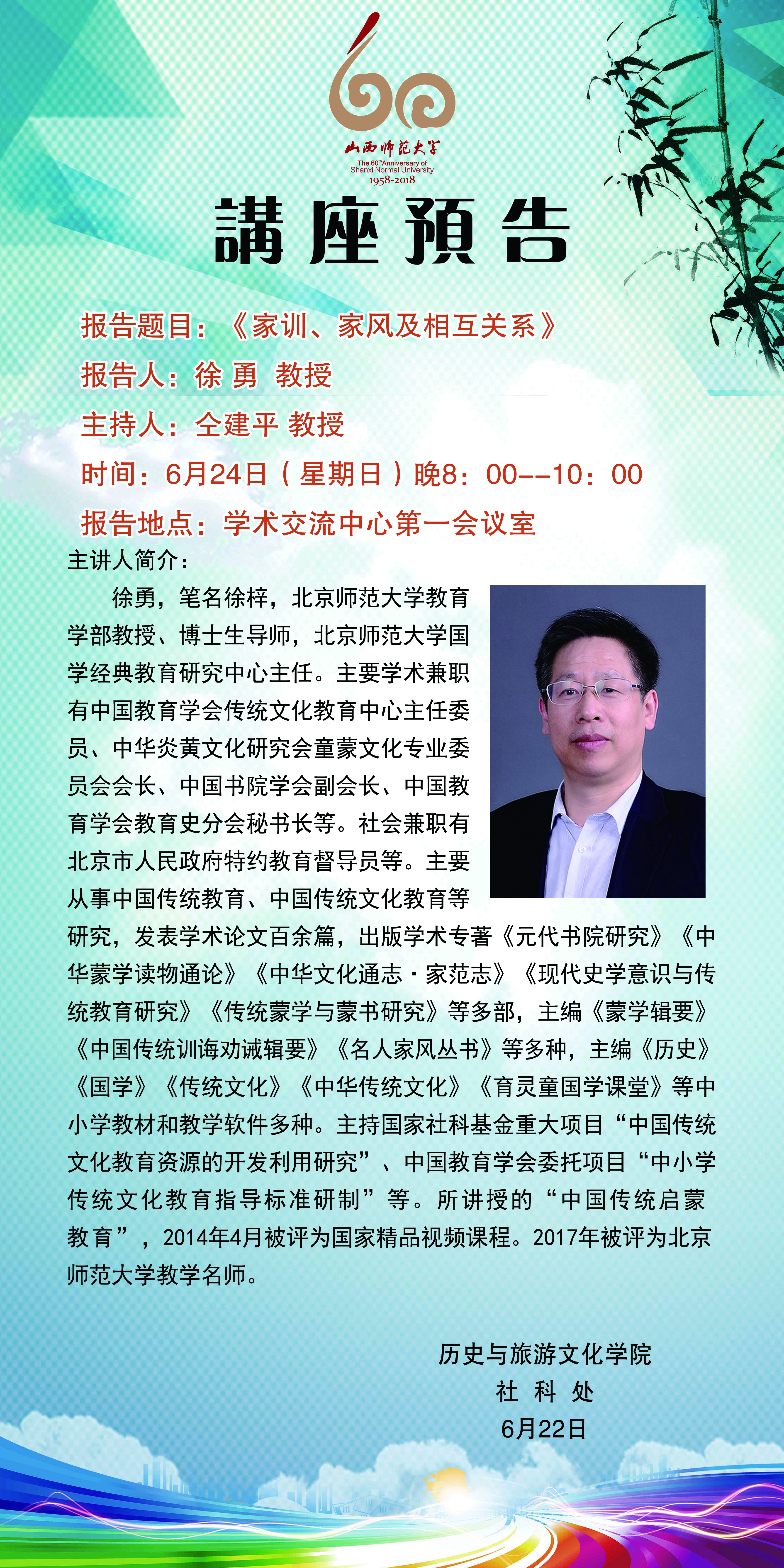 【预告】北京师范大学教育学部徐勇教授应历史与文化学院邀请来我校作学术报告